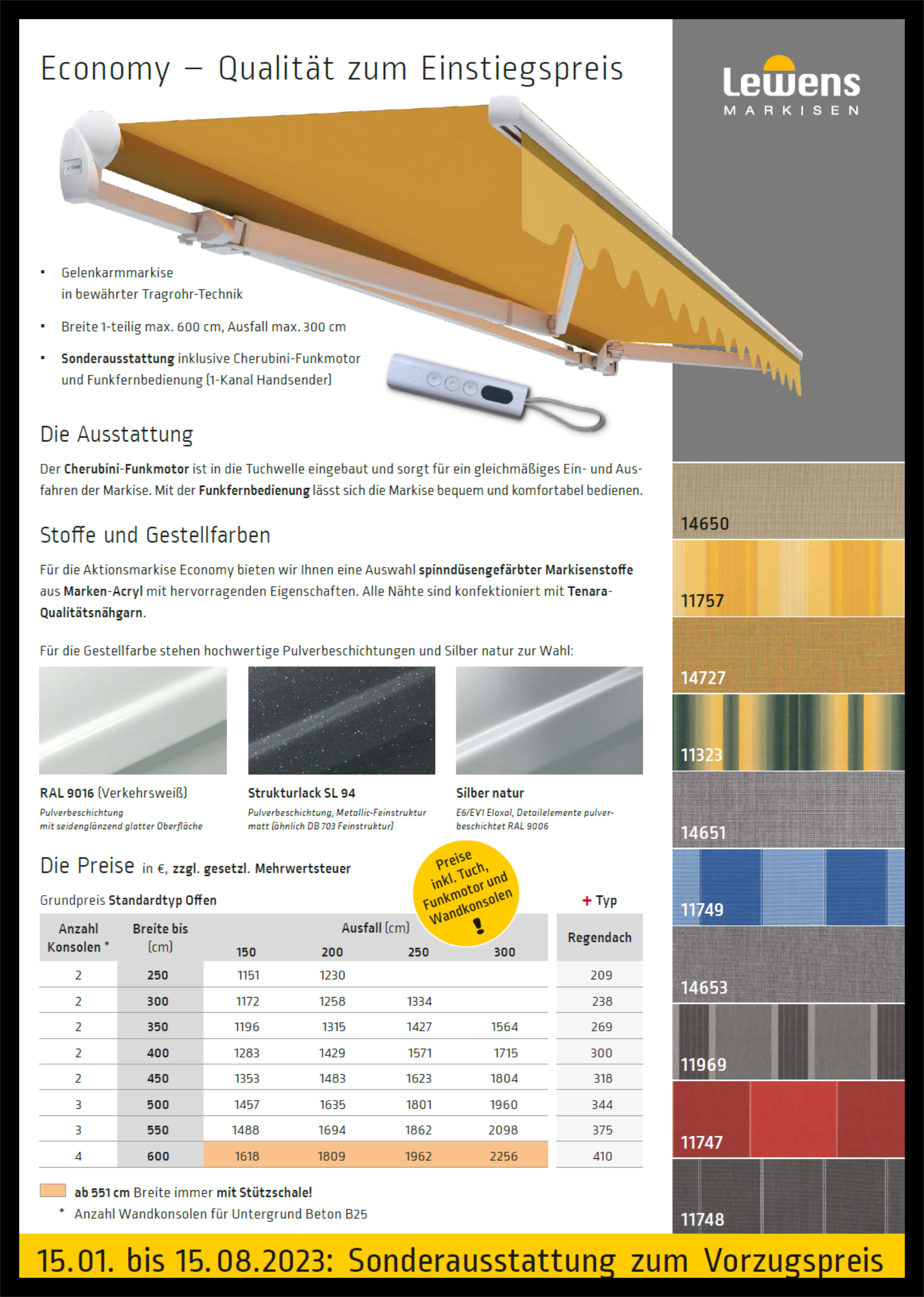 Weitere Infos zu den Markisen die wir verbauen finden Sie hier -> Lewens Markisen